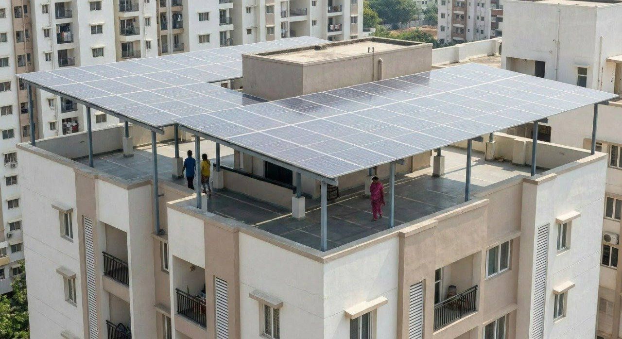Solar systems can power essential shared facilities like lifts, water pumps, street lights, CCTV systems, and clubhouse areas.Instead of spending society funds on electricity bills, investing in solar helps grow the sinking fund with returns in just 3.5 years.
